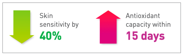 Improves antioxidant capacity within 15 days and reduces skin sensitivity by 40% for healthier skin.